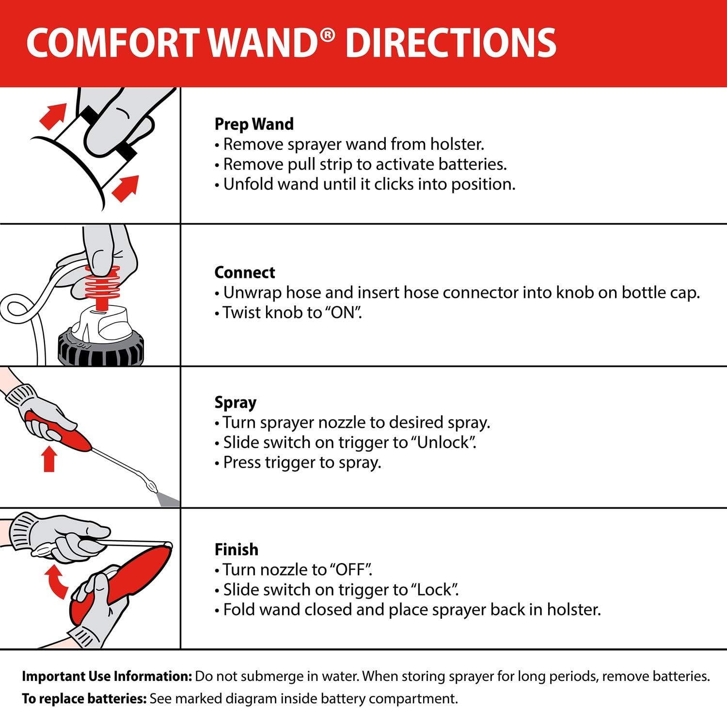 • WAND MAKES APPLICATION EASY: The Comfort Wand eliminates hand fatigue, and there’s no pumping required, making it easy to spray along your home’s perimeter–indoors and outside